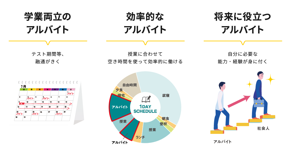 3.「学業の両立」「効率」「将来に役立つ」の目線から求人を厳選!
